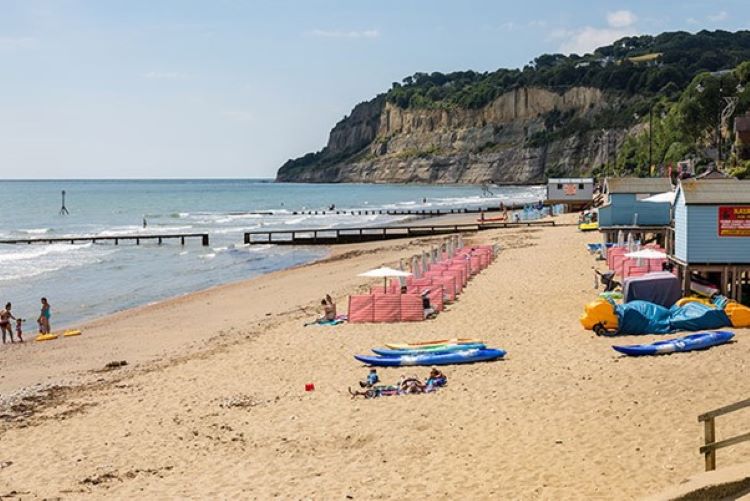 Am anderen Ende von Sandown finden Sie Yaverland Beach. Dies ist eine gute Wahl für Spaziergänger mit Hunden und Dinosaurierjäger, da die Klippen hier in der Nähe für die Entdeckung prähistorischer Fossilien berühmt sind, von denen einige im nahe gelegenen Dinosaur Isle Museum ausgestellt sind.