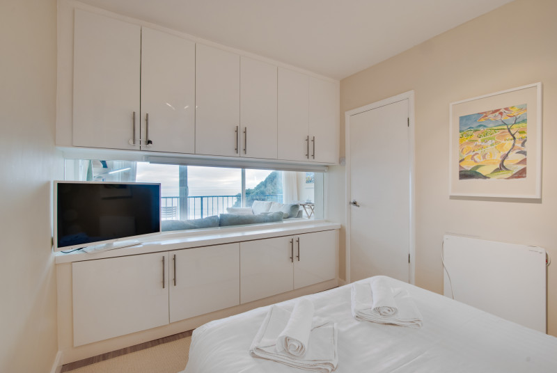 Be greeted by floor-to-ceiling panoramic views of Caswell Bay as you step through the door of this exceptional, luxury top floor Redcliffe apartment. The large picture window in the bedroom means you can enjoy the uninterrupted sea views from almost every room as well as the full-width balcony. The open-plan layout and glossy kitchen cabinetry keep the living space bright and the wall-mounted cupboards in the bedroom means there is ample storage. Caswell Bay can be privately accessed from the apartment … Lesen Sie mehr