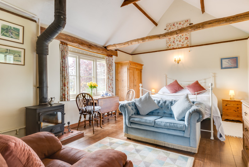 This charming former stables nestles in the landscaped grounds of the owners' stunning medieval farmhouse, with lovely views over the meadows towards Orlestone Forest, which is a haven for birds (the area is famous for nightingales). It has been thoughtfully designed, incorporating many original beams and furnished to a high standard with the use of a summer house overlooking the pond, perfect for enjoying the countryside views and wildlife. The owners are developing wild flower meadows and were winners in … Lesen Sie mehr