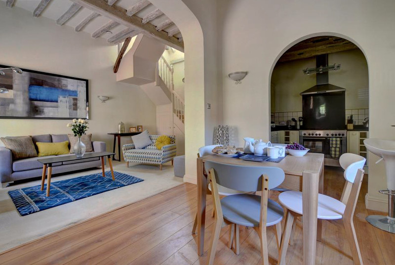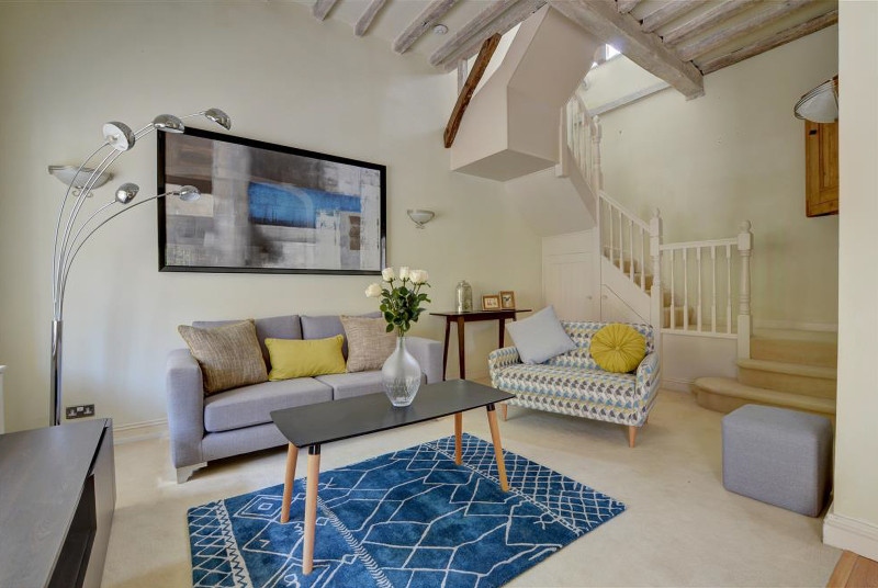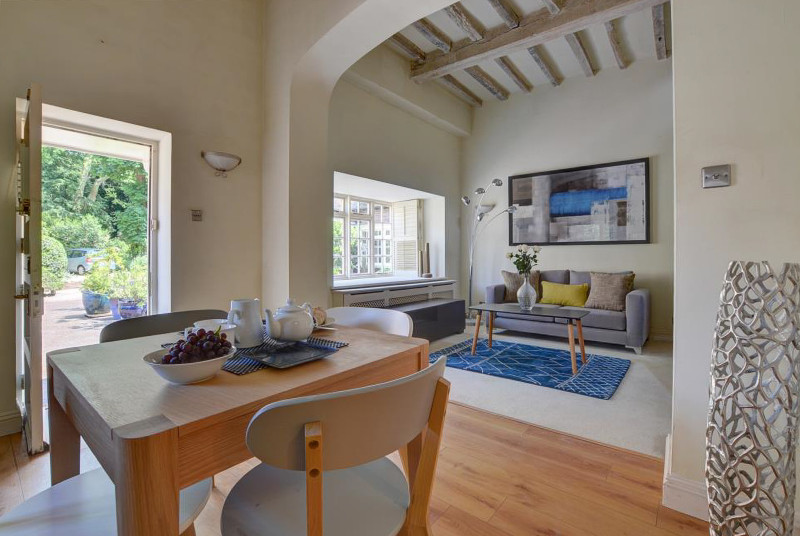 A stylish and well-appointed mews cottage, which was originally the stables of the 18th Century house, in an idyllic, prestigious central location in Royal Tunbridge Wells with access to four acres of well tended park-like grounds. This contemporary property has an open plan living and dining area and is well designed for comfortable, modern living but retains character with whitewashed Moorish beams and shutters at the windows. There are two double bedrooms and a modern bathroom upstairs. It is only a short walk to The Common which is a … Lesen Sie mehr