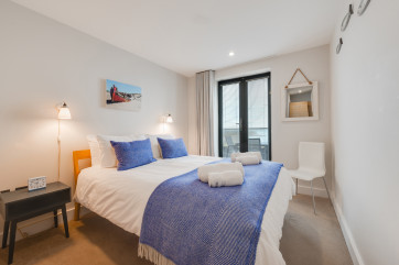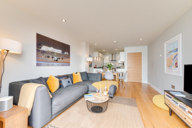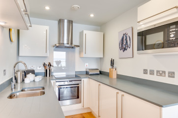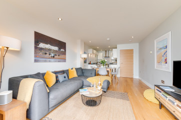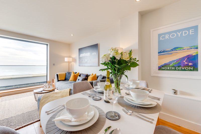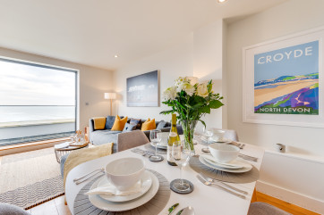 Part of the impressive Ocean Point development, this beautiful apartment is in an unrivalled location with breathtaking south facing views of Saunton Sands and direct access to the beach (just over 150 metres away) from the communal gardens. It suits family or friends, with a king bedroom, a twin, and two bathrooms, and is perfectly positioned for the beach, walking, and playing golf. The apartment has high quality furnishings and contemporary styling with a relaxed seaside vibe, nautical prints and colours. … Lesen Sie mehr