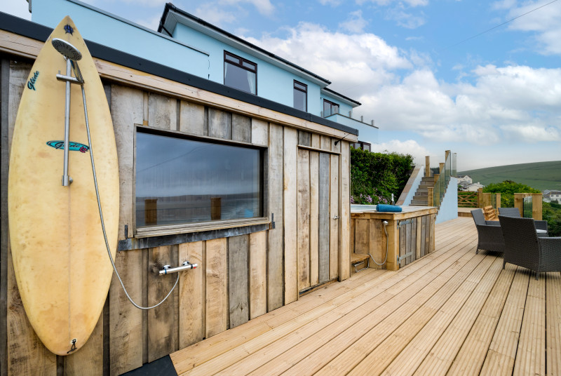 A bright and inviting detached property within 300 metres of Woolacombe Beach, one of North Devon’s most popular water sports destinations. Featuring an open-plan kitchen/diner, large family room and sundeck, this dog-friendly property is ideal for large families or groups of friends, with an array of activities for all ages nearby. Bathing in natural light that pours into its sea-facing rooms, this fresh and contemporarily furnished property features large rooms with soothing colour palettes and wooden flooring. Stream your favourite … Lesen Sie mehr