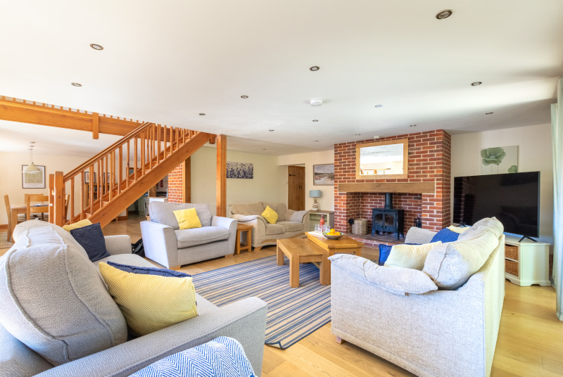 Retreat to this country-style lodge for a relaxing escape with friends and family to the Norfolk coast. Filled with charming features such as a wood burner, exposed brick walls and vaulted ceilings, this property will ensure all guests feel at home immediately upon arrival. Days can be spent enjoying the seaside at Wells (6 miles) building sandcastles and soaking up the surrounding views of the coast and woodland.The ground floor consists of a beautiful open-plan living room/kitchen/dining space where large … Lesen Sie mehr