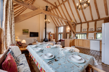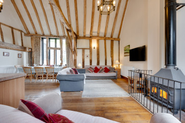 Situated within the grounds of Wattisham Hall and surrounded by glorious Suffolk countryside, sits this delightful four-bedroom barn conversion. Offering plenty of space, it is ideal for a gathering of friends or a family reunion. Large in size, the property has everything you could want to keep guests of all ages entertained. Inside, the open-plan ground floor combines old-world charm with comfortable decor, and wooden beams, brick flooring, and white tones create a soothing atmosphere. After a day exploring, unwind … Lesen Sie mehr