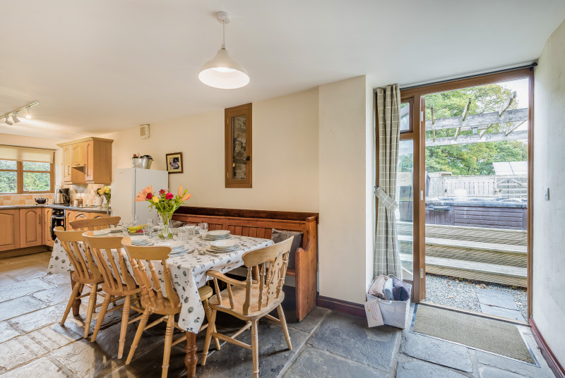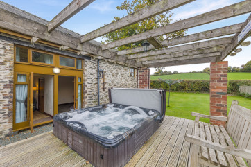 Situated on a working farm among the rolling Welsh countryside, this fabulous family-friendly cottage welcomes seven guests with two dogs. Spend days walking, cycling, or partaking in water sports before soaking away the day in the hot tub in the garden.Inside, you will find a welcoming lounge with an exposed stone wall and a Smart TV. Spend evenings socialising together, playing games or watching your favourite films. A spacious kitchen/diner has everything you need to cook up tasty meals and … Lesen Sie mehr